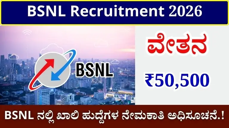 BSNL ನೇಮಕಾತಿ 2026: ಡಿಗ್ರಿ ಮುಗಿಸಿದವರಿಗೆ ಕೇಂದ್ರ ಸರ್ಕಾರದಲ್ಲಿ ಕೆಲಸ! 120 ಹುದ್ದೆಗಳಿಗೆ ಅರ್ಜಿ ಆಹ್ವಾನ, ₹50,000 ಸಂಬಳ