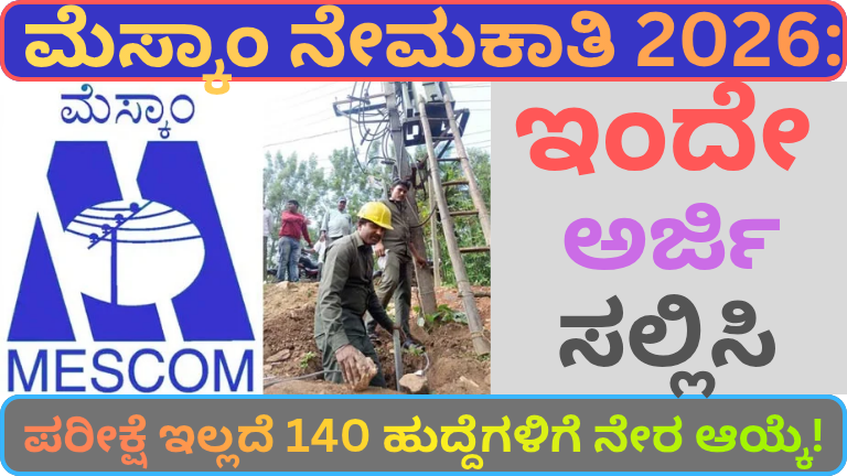 ಮೆಸ್ಕಾಂ ನೇಮಕಾತಿ 2026: ಪರೀಕ್ಷೆ ಇಲ್ಲದೆ 140 ಹುದ್ದೆಗಳಿಗೆ ನೇರ ಆಯ್ಕೆ! ಇಂದೇ ಅರ್ಜಿ ಸಲ್ಲಿಸಿ.