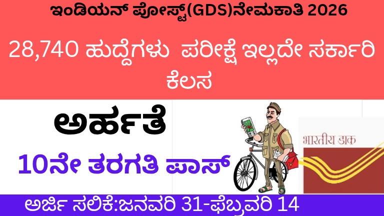 📰 ಭಾರತೀಯ ಅಂಚೆ ಇಲಾಖೆಯಲ್ಲಿ 28,740 ಗ್ರಾಮೀಣ ಡಾಕ್ ಸೇವಕ್ ಹುದ್ದೆಗಳು | ಪರೀಕ್ಷೆಯಿಲ್ಲದೆ ಸರ್ಕಾರಿ ಉದ್ಯೋಗದ ಭರ್ಜರಿ ಅವಕಾಶ ಭಾರತೀಯ ಅಂಚೆ ಇಲಾಖೆ (India Post) …